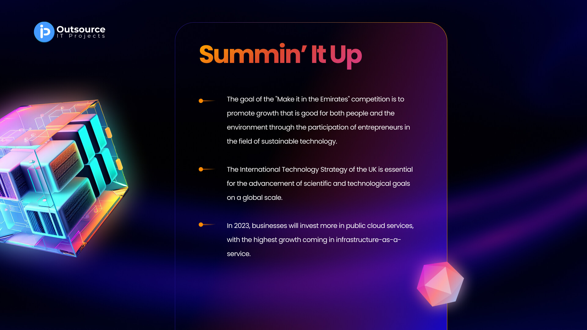 The goal of the "Make it in the Emirates" competition is to promote growth that is good for both people and the environment through the participation of entrepreneurs in the field of sustainable technology.