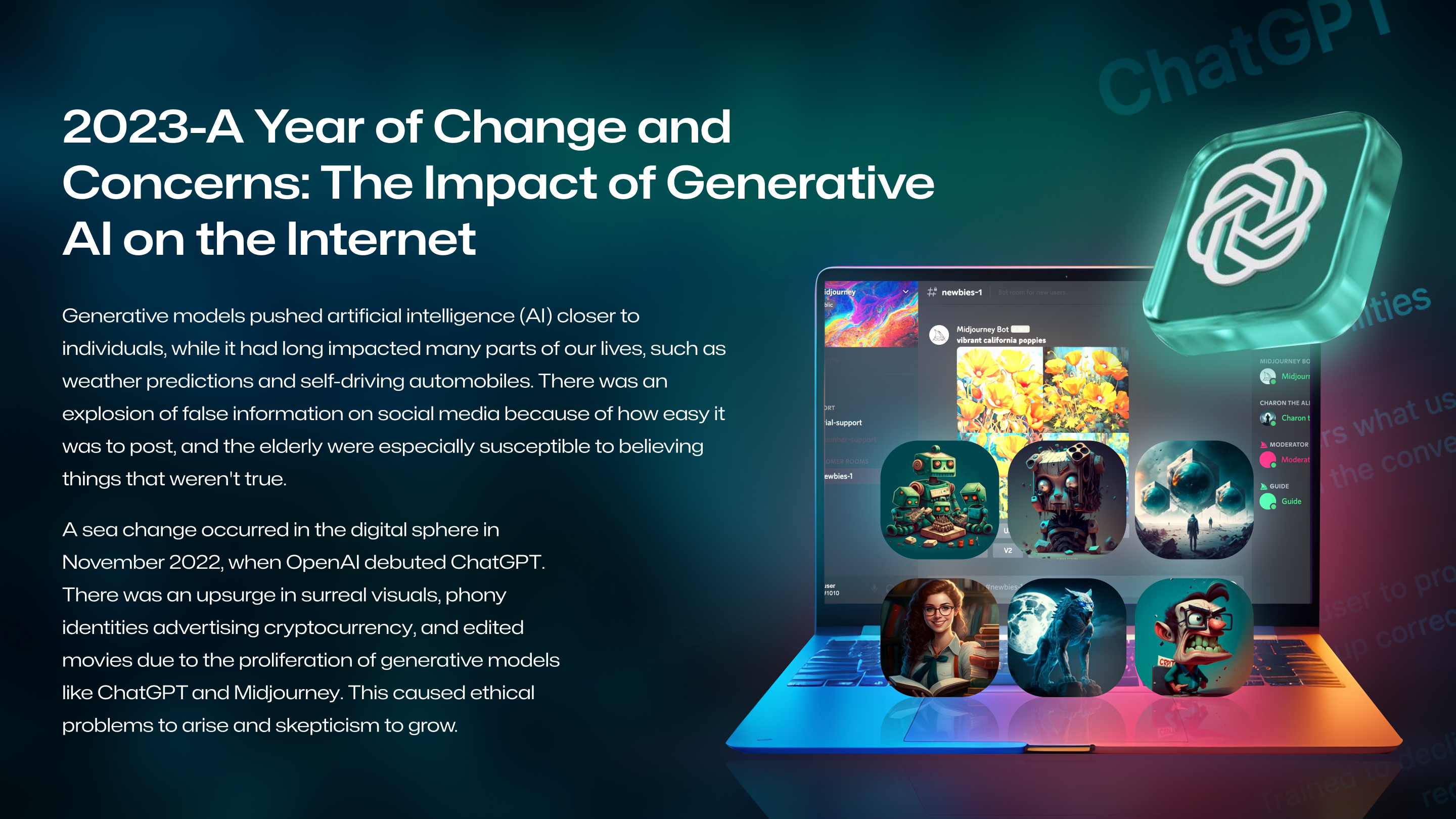 A sea change occurred in the digital sphere in November 2022, when OpenAI debuted ChatGPT. There was an upsurge in surreal visuals, phony identities advertising cryptocurrency, and edited movies due to the proliferation of generative models like ChatGPT and Midjourney. This caused ethical problems to arise and skepticism to grow.