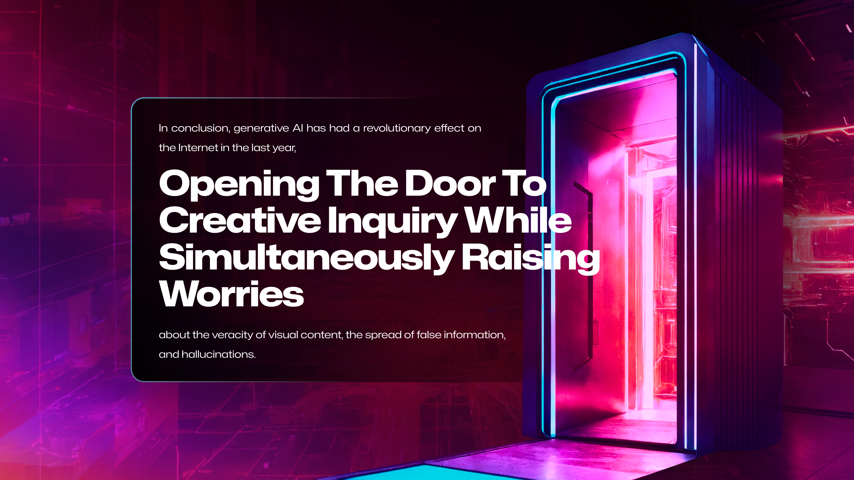 In conclusion, generative AI has had a revolutionary effect on the Internet in the last year, opening the door to creative inquiry while simultaneously raising worries about the veracity of visual content, the spread of false information, and hallucinations.