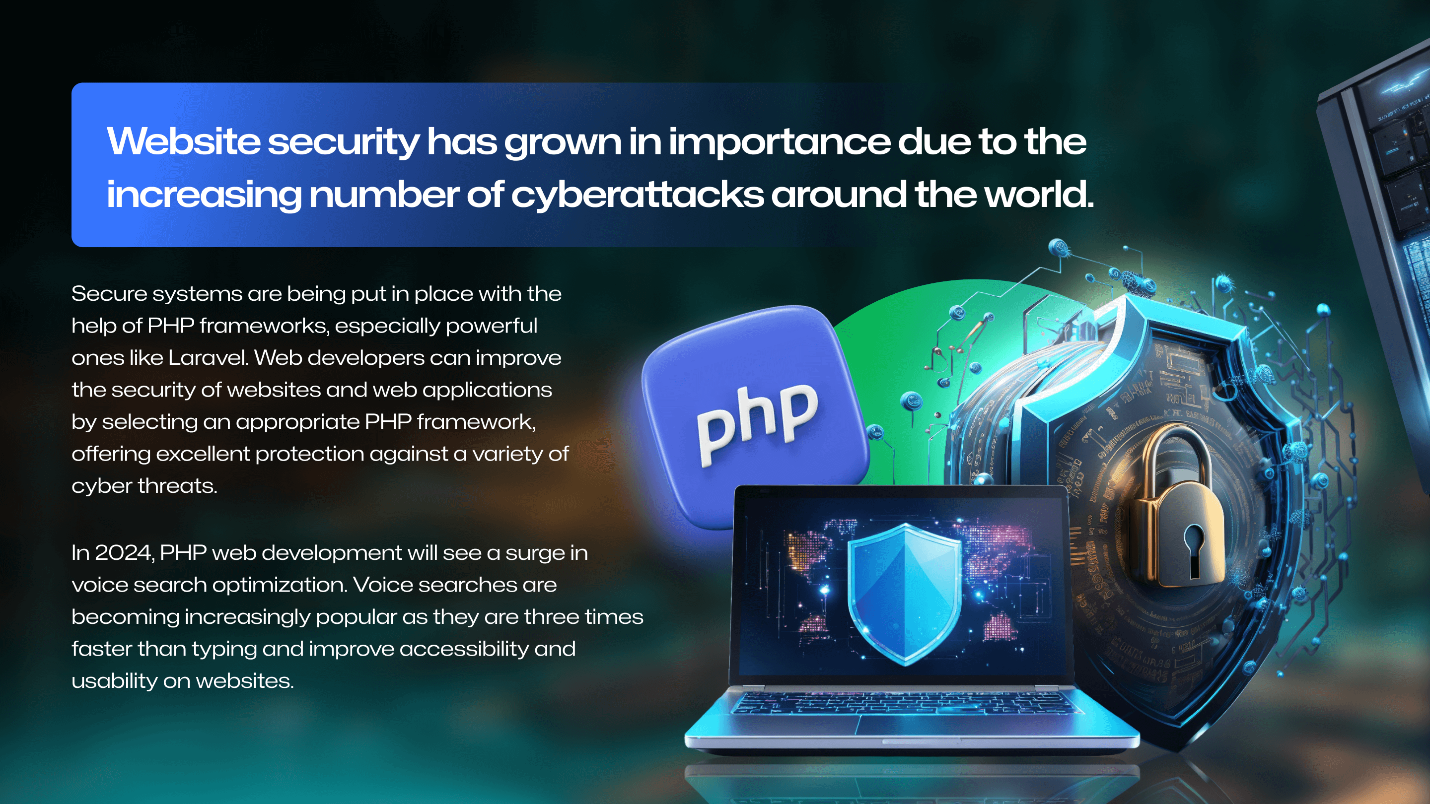 - Website security has grown in importance due to the increasing number of cyberattacks around the world. Secure systems are being put in place with the help of PHP frameworks, especially powerful ones like Laravel. Web developers can improve the security of websites and web applications by selecting an appropriate PHP framework, offering excellent protection against a variety of cyber threats.