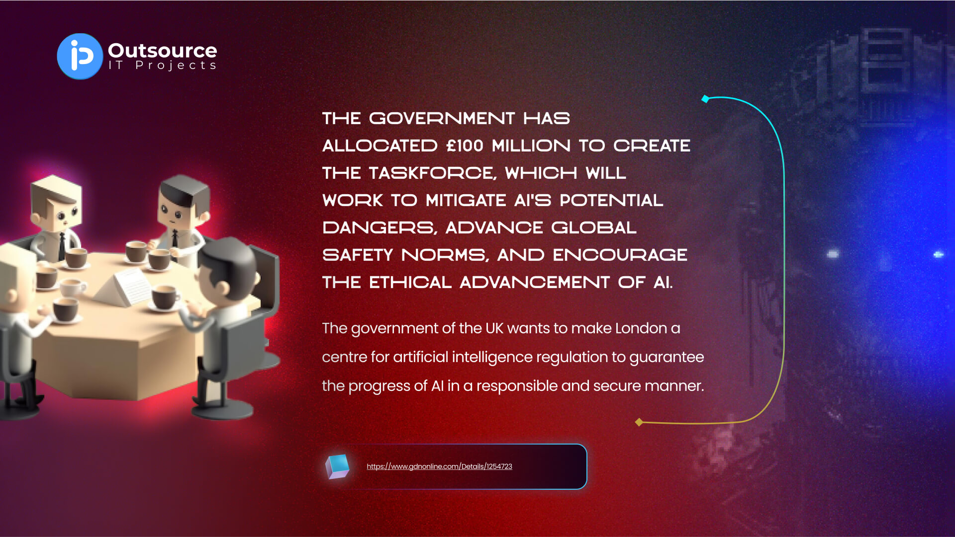 The government has allocated £100 million to create the taskforce, which will work to mitigate AI's potential dangers, advance global safety norms, and encourage the ethical advancement of AI.