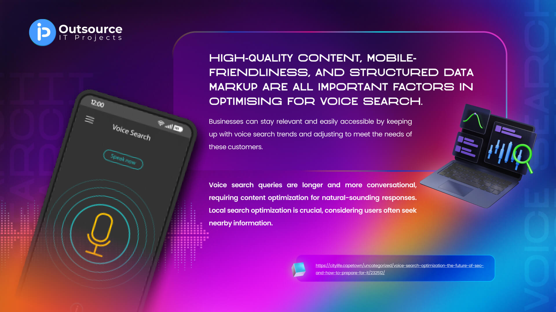 High-quality content, mobile-friendliness, and structured data markup are all important factors in optimising for voice search. Businesses can stay relevant and easily accessible by keeping up with voice search trends and adjusting to meet the needs of these customers.