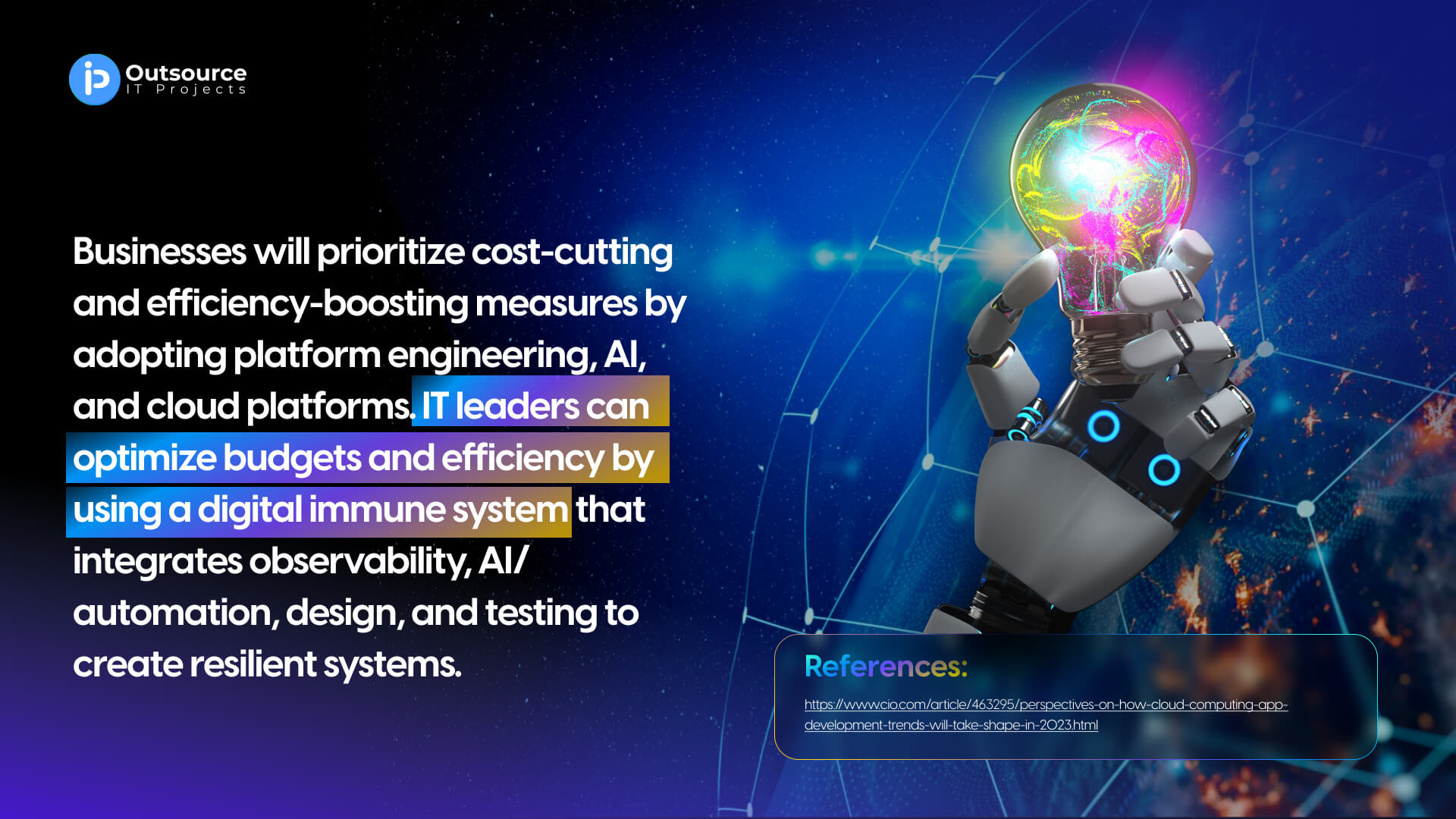 The second development is that businesses will prioritize cost cutting and efficiency boosting measures to strengthen their bottom lines in the face of a weak economy and a shortage of qualified workers. Costs, operations, and software delivery can all benefit from IT leaders and executives adopting platform engineering and utilizing artificial intelligence and cloud platforms. IT budgets and efficiency can be optimized this year by employing a digital immune system that integrates software engineering principles like observability, AI/automation, and design and testing to create resilient systems that reduce operational and security concerns.