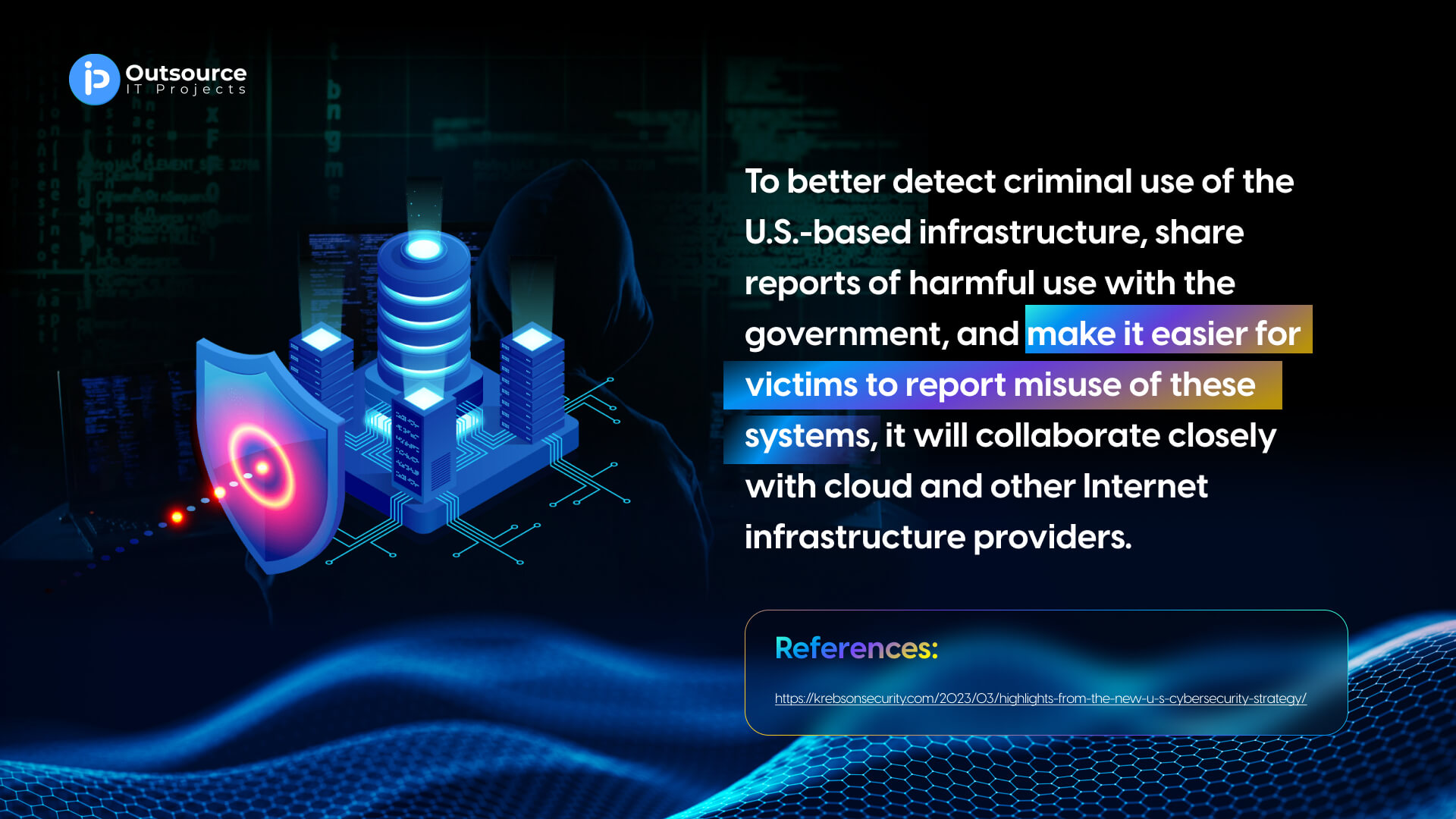 To better detect criminal use of the U.S.-based infrastructure, share reports of harmful use with the government, and make it easier for victims to report misuse of these systems, it will collaborate closely with cloud and other Internet infrastructure providers.