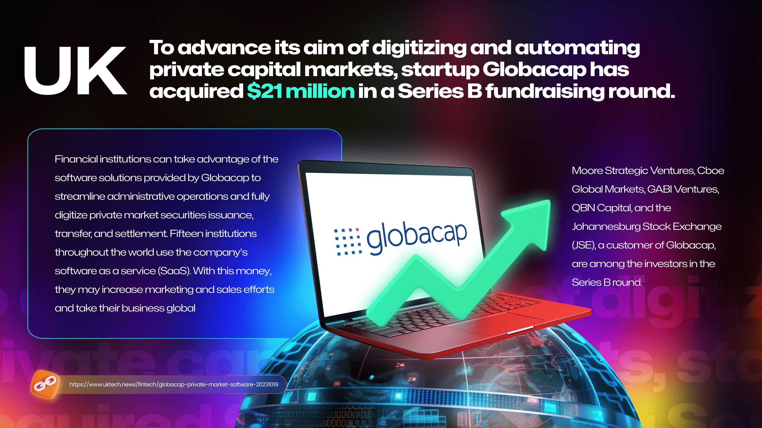 - With the help of its $21 million Series B fundraising round, UK’s startup Globacap plans to digitize and automate the private capital markets.