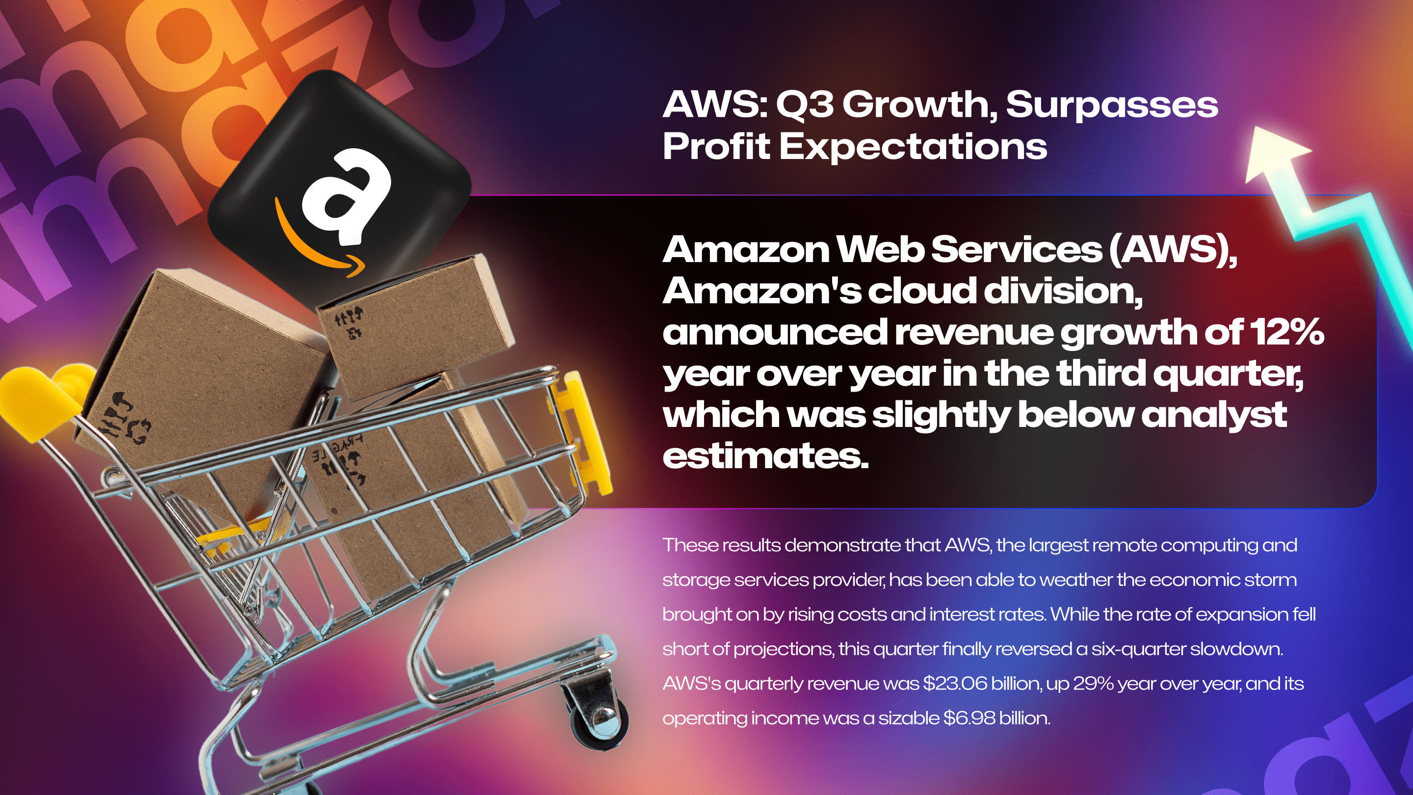 - Third-quarter revenue growth for Amazon Web Services (AWS) was announced at 12%, which was below analyst estimates.