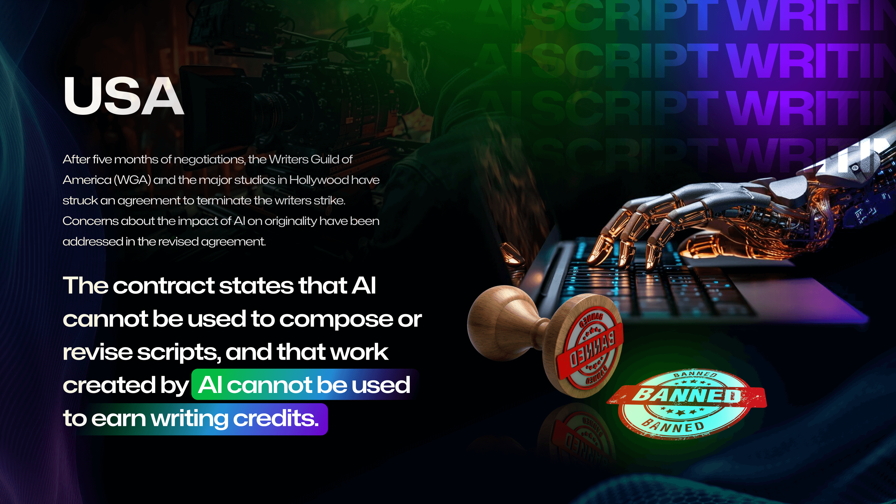 The contract states that AI cannot be used to compose or revise scripts, and that work created by AI cannot be used to earn writing credits. Companies cannot demand that writers utilize AI technologies, but employees have the option to do so if they so choose. The WGA retains the right to enforce the contract's prohibition on using authors' works for AI training purposes.