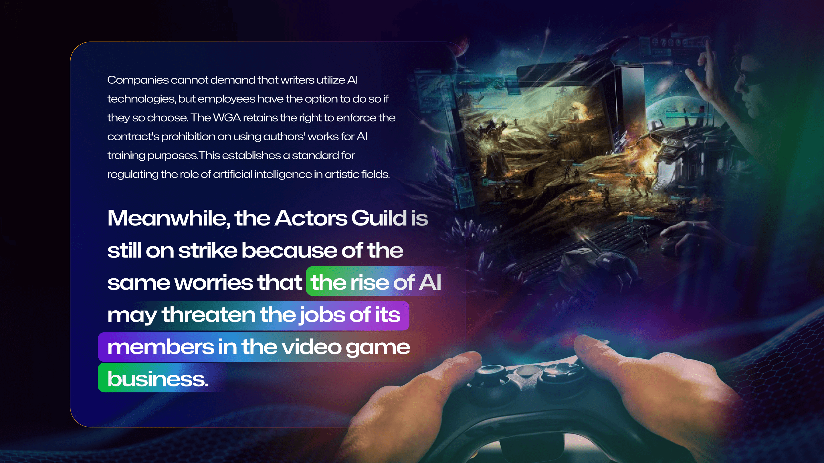 This establishes a standard for regulating the role of artificial intelligence in artistic fields. Meanwhile, the Actors Guild is still on strike because of the same worries that the rise of AI may threaten the jobs of its members in the video game business.