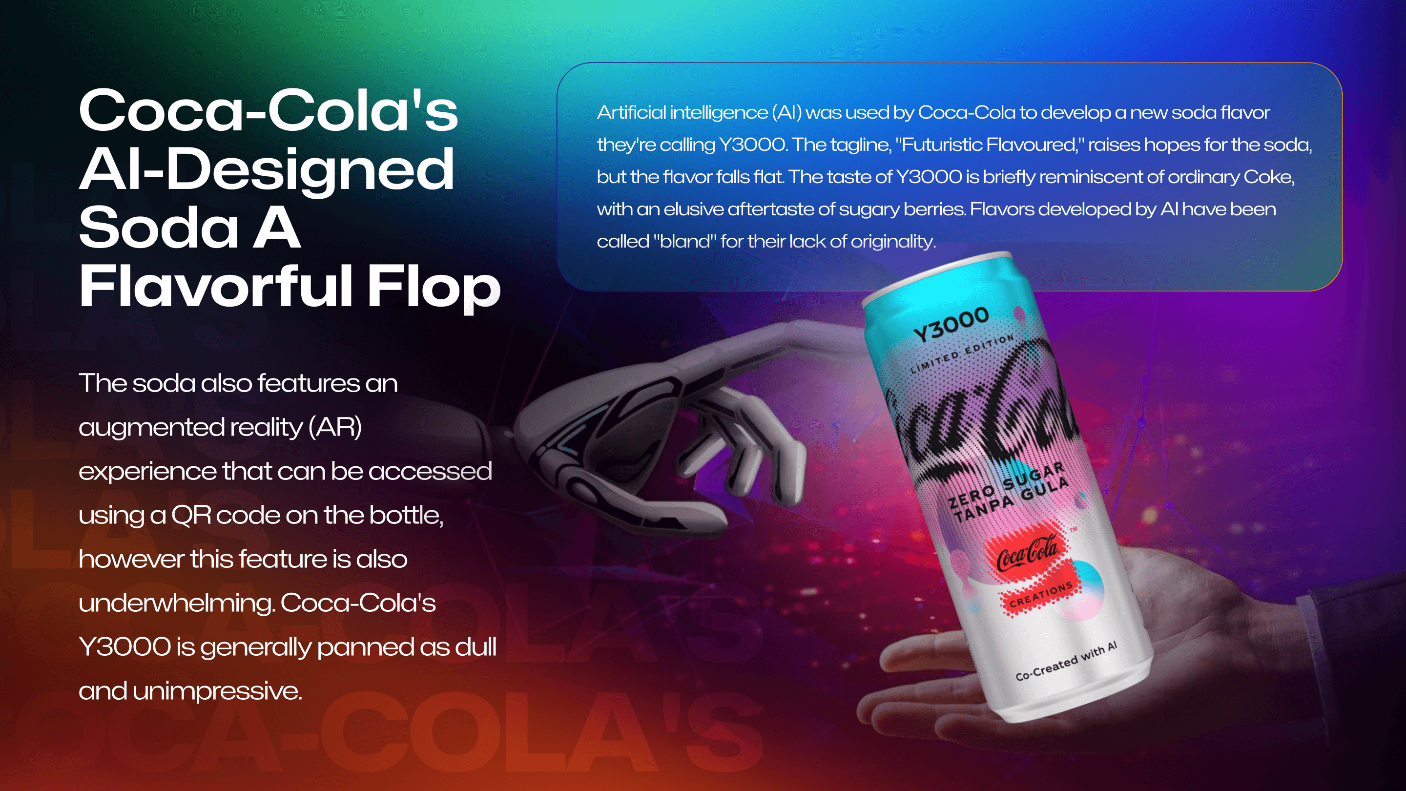 - Coca-Cola has used AI to create a new soda flavor called Y3000, but the taste is described as disappointing and bland.