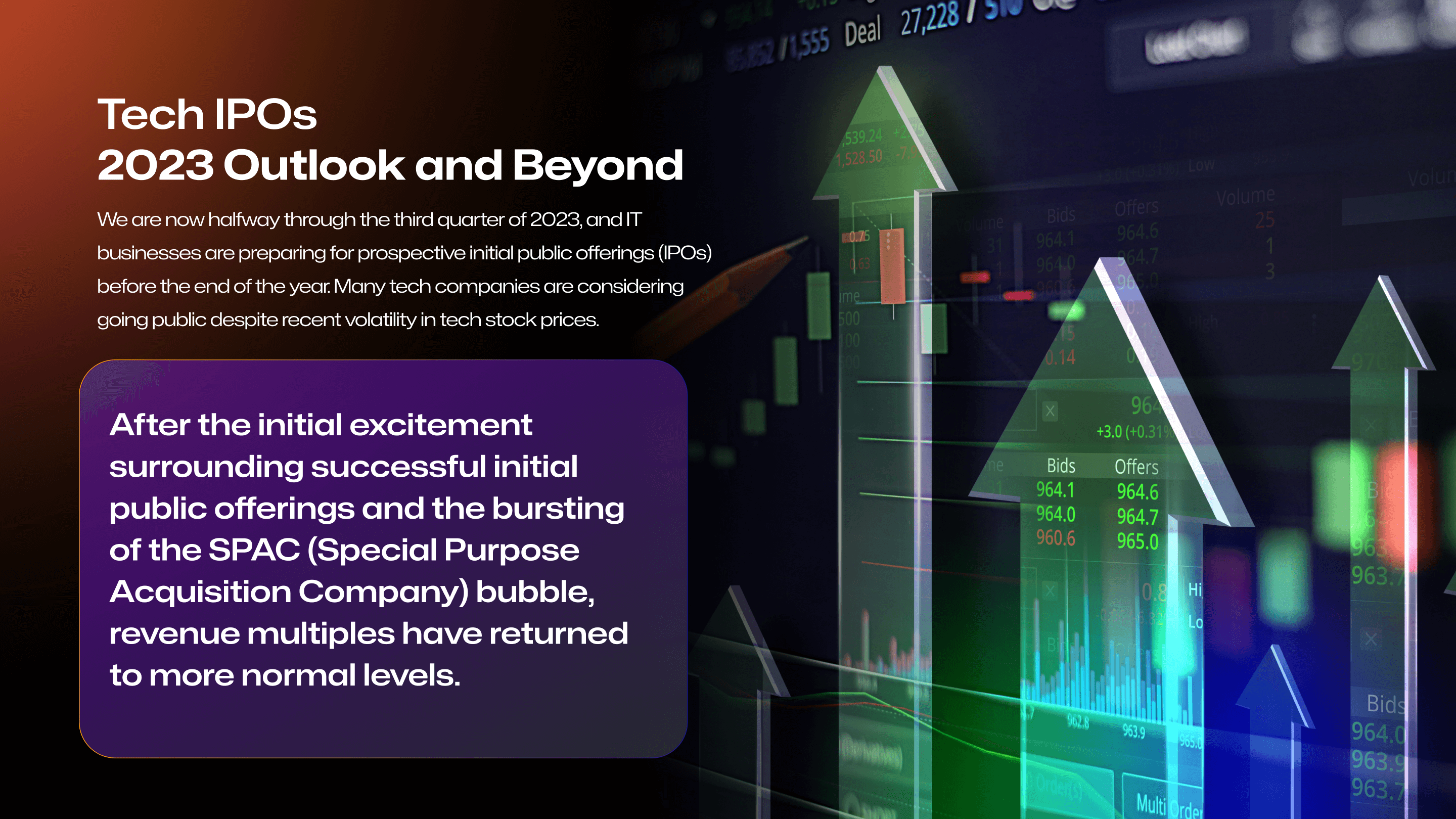 We are now halfway through the third quarter of 2023, and IT businesses are preparing for prospective initial public offerings (IPOs) before the end of the year. Many tech companies are considering going public despite recent volatility in tech stock prices.