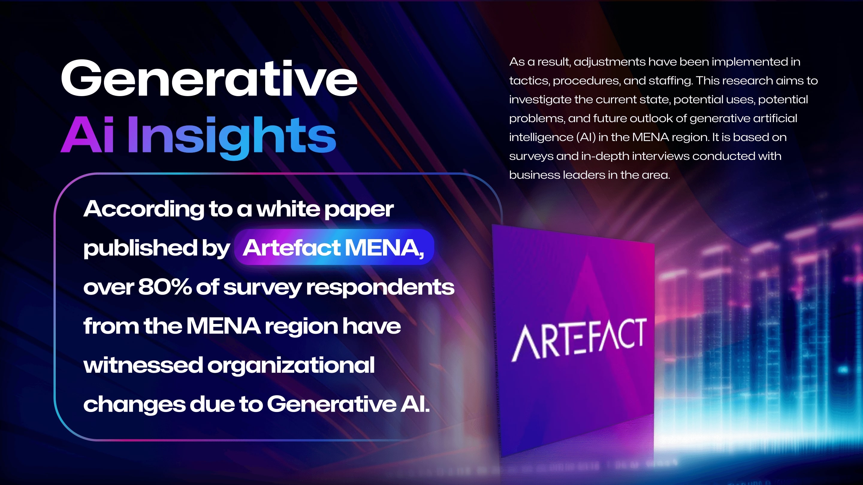 According to a white paper published by Artefact MENA, over 80% of survey respondents from the MENA region have witnessed organizational changes due to Generative AI. As a result, adjustments have been implemented in tactics, procedures, and staffing. This research aims to investigate the current state, potential uses, potential problems, and future outlook of generative artificial intelligence (AI) in the MENA region. It is based on surveys and in-depth interviews conducted with business leaders in the area.