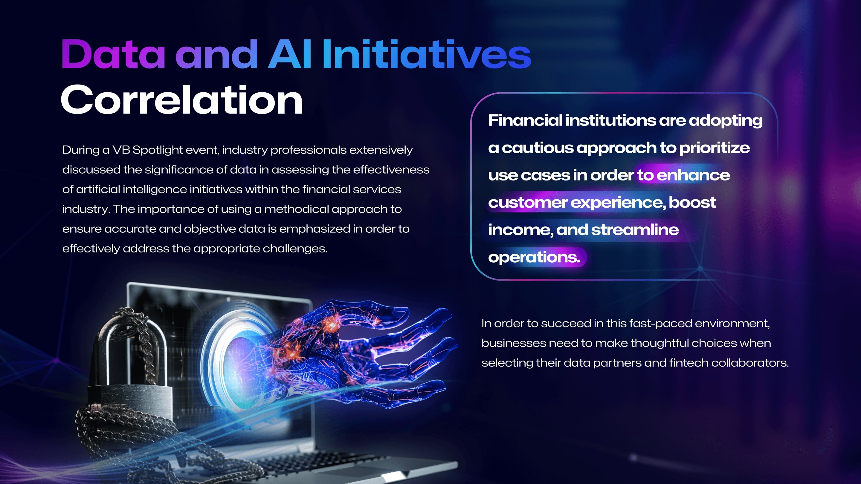During a VB Spotlight event, industry professionals extensively discussed the significance of data in assessing the effectiveness of artificial intelligence initiatives within the financial services industry. The importance of using a methodical approach to ensure accurate and objective data is emphasized in order to effectively address the appropriate challenges. Financial institutions are adopting a cautious approach to prioritize use cases in order to enhance customer experience, boost income, and streamline operations. In order to succeed in this fast-paced environment, businesses need to make thoughtful choices when selecting their data partners and fintech collaborators.